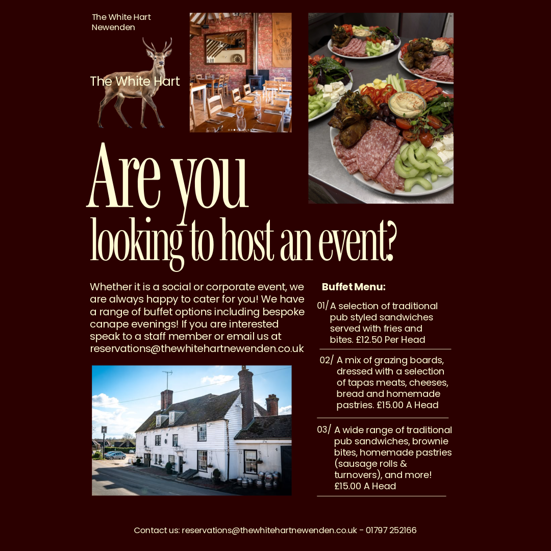 Here at The White Hart we take pride in serving great homemade pub food, it's as simple as that! Classic dishes, succulent steaks, traditional Sunday Roasts so good you may never think of cooking one at home again and a choice of old school desserts. Book your table today!
